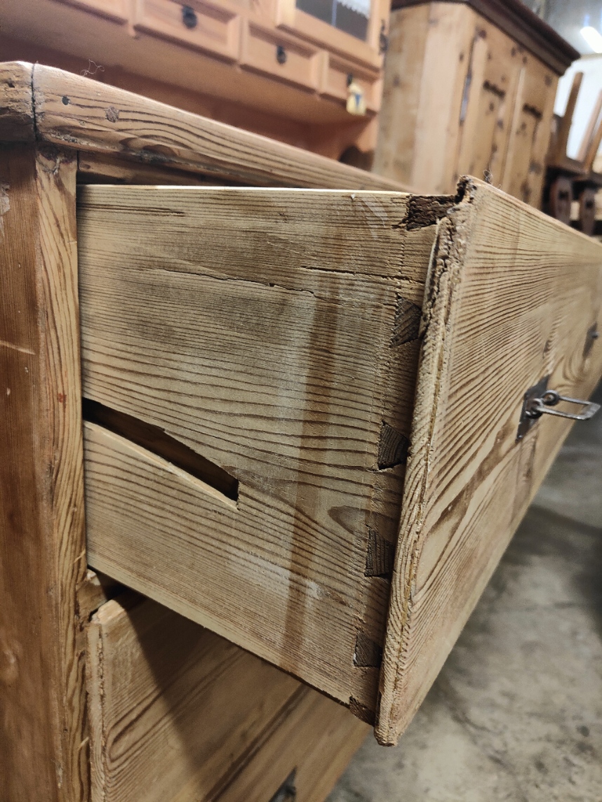 Cassettone in abete fine ‘800, restaurato, trattato antitarlo e cerato.