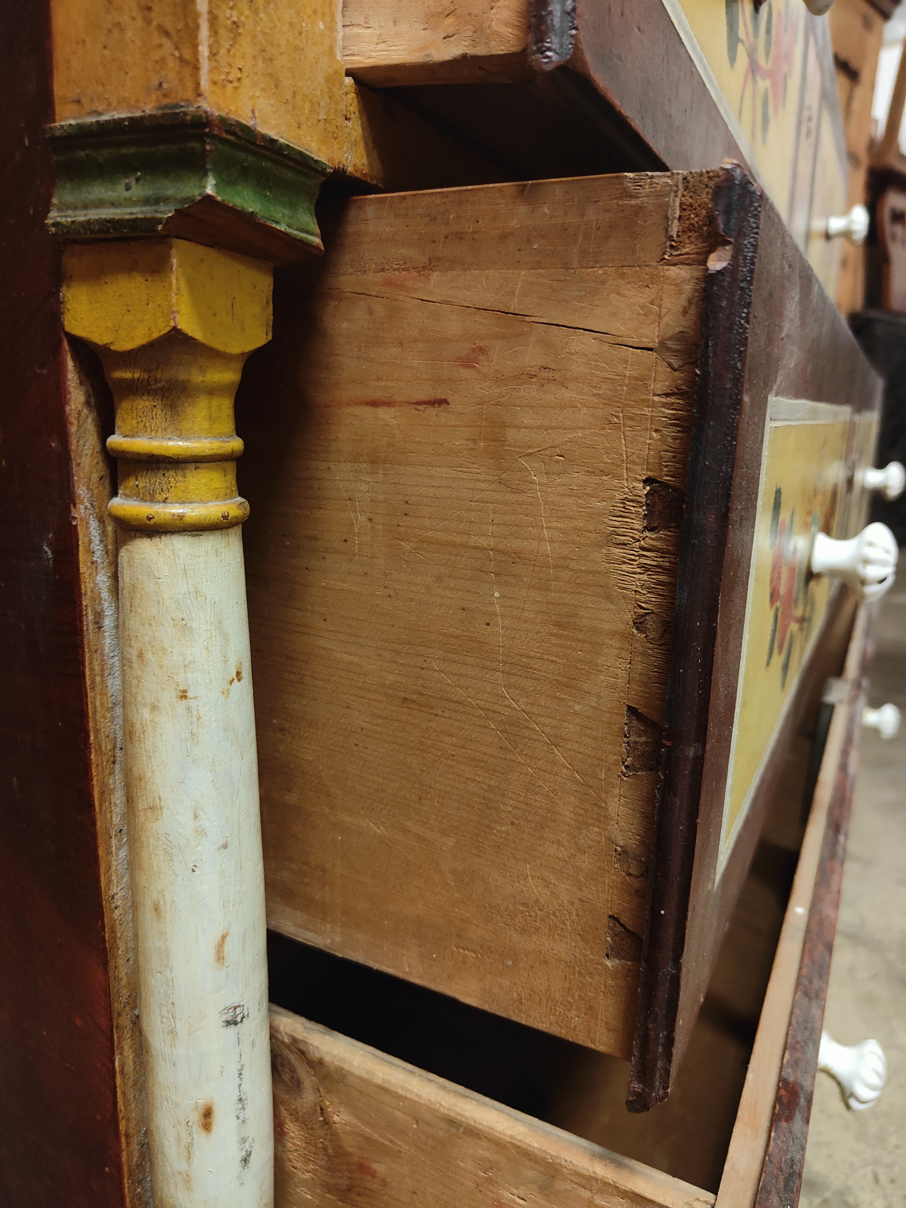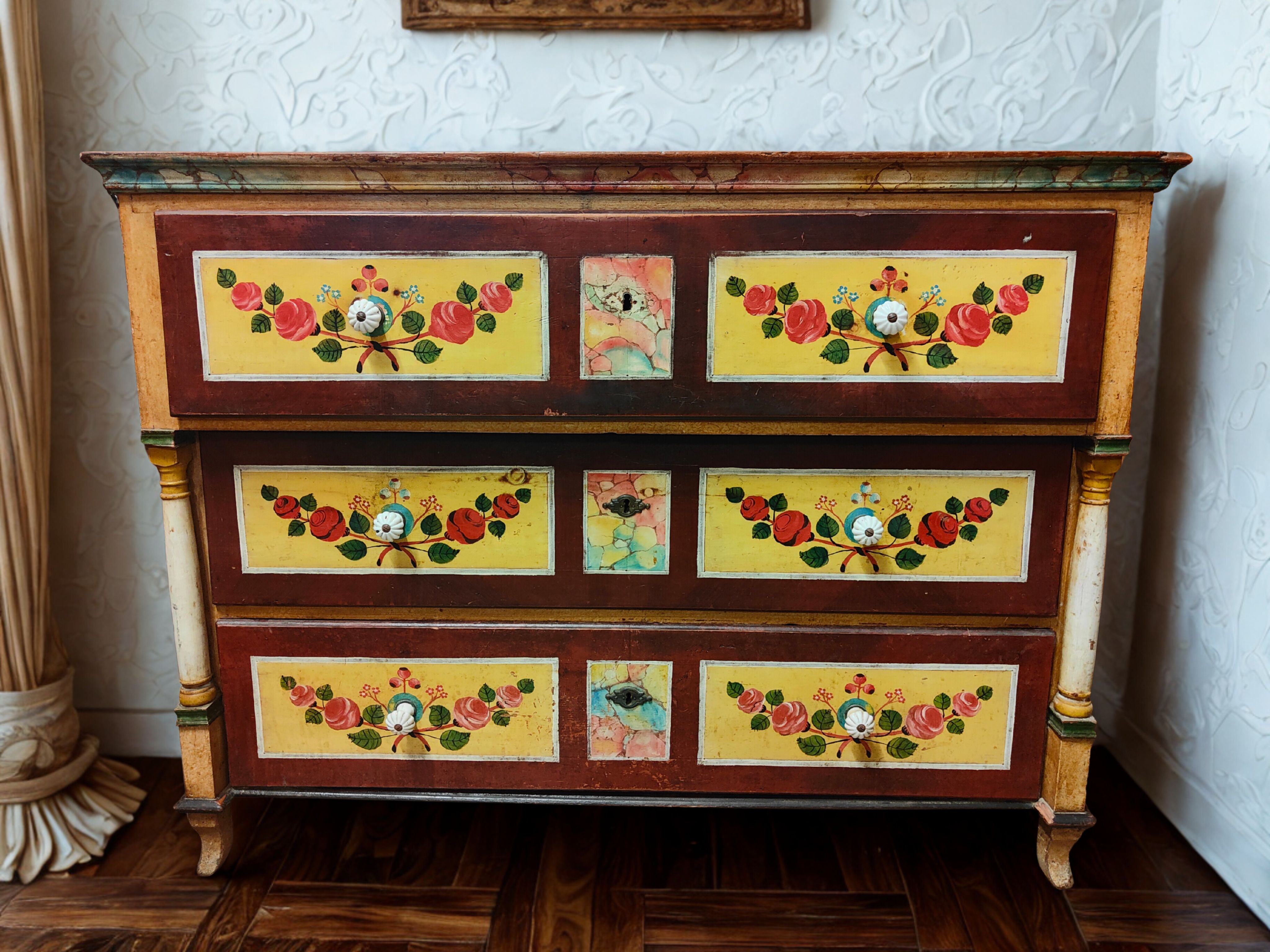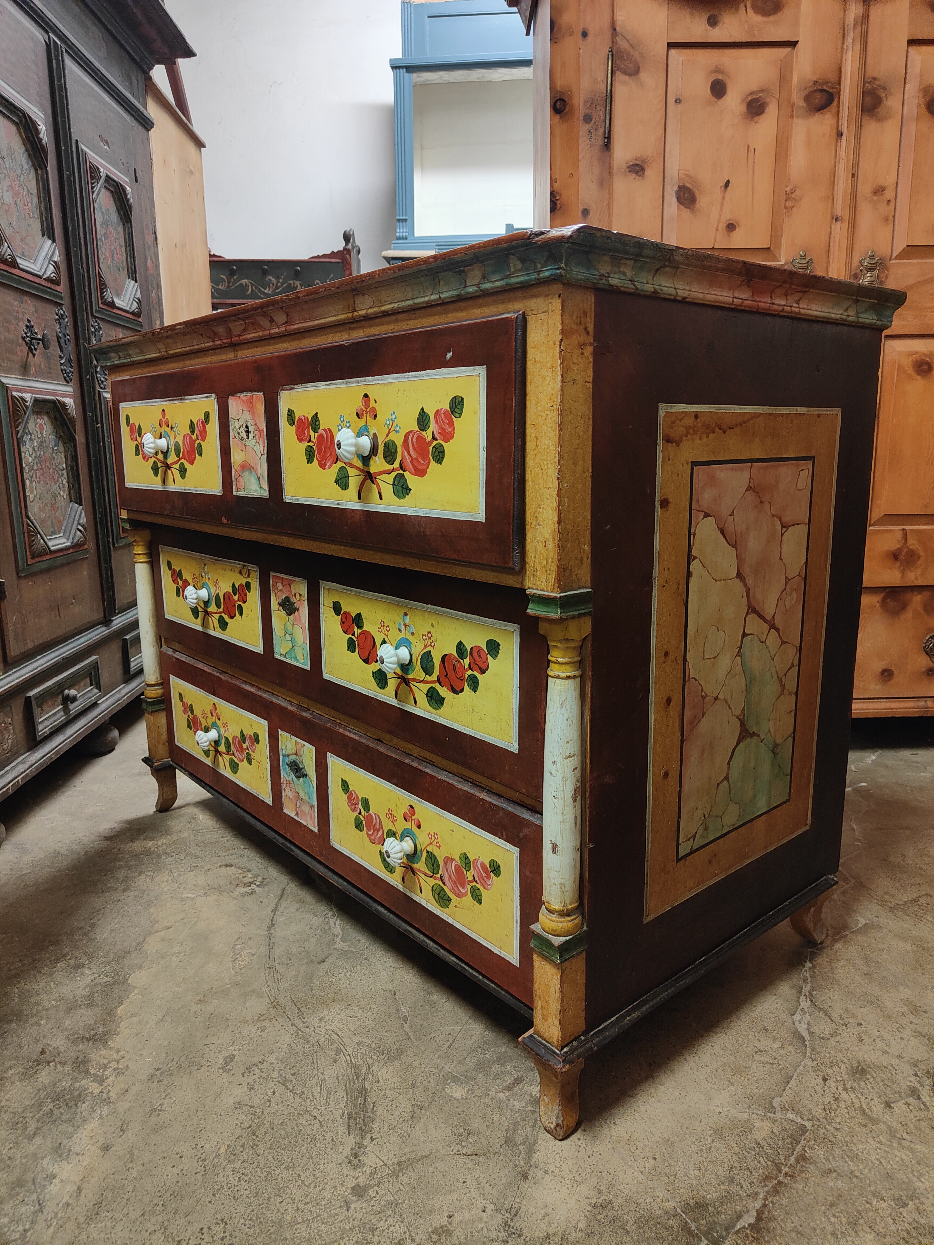 Magnifico cassettone in cirmolo proveniente dalla Val Senales, datato 1898.